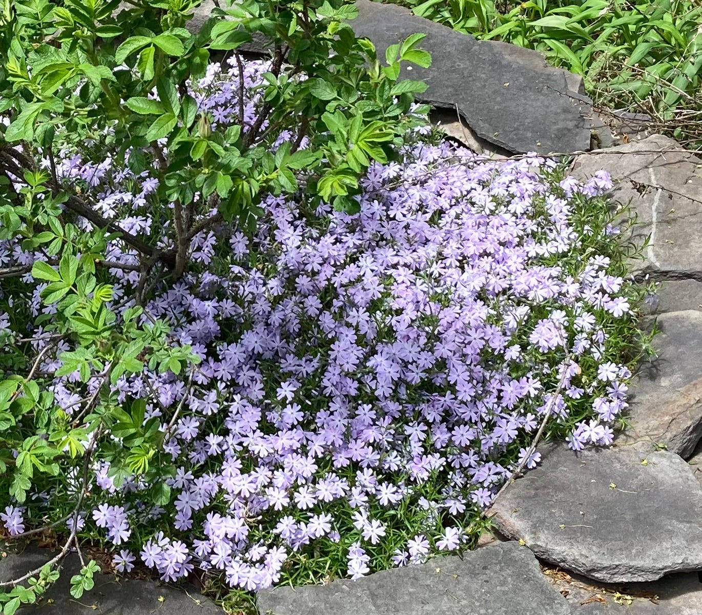 When I first moved to the Northeast, it was spring, and creeping phlox was in bloom in many of my neighbor’s yards, spreading across flower beds and spilling over retaining walls. That color—bluer than lavender, paler than violets, more delicate than delphiniums, I loved it. Phlox comes in many colors, but the classic for creeping phlox seems to be that…